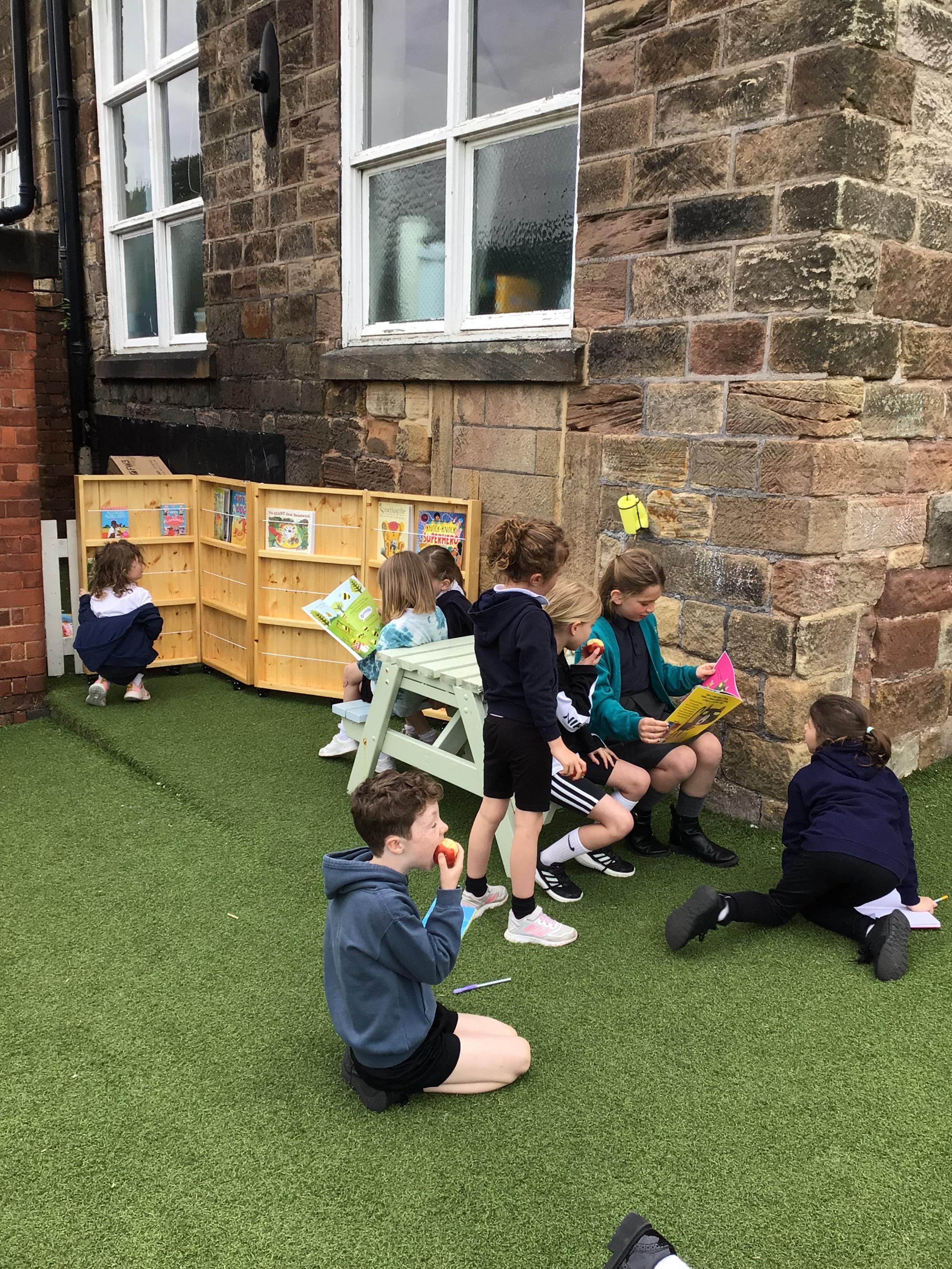 Our children now have the opportunity to read for pleasure during break and lunchtimes. They choose from a selection of texts from our fabulous new bookcase.
